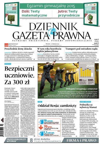 Dziennik Gazeta Prawna – codziennie obiektywne i rzetelne informacje z kraju i ze świata. Piszemy o tym, co dziś ważne i odpowiadamy na Wasze pytania – szczególnie te związane z obecnymi wyzwaniami tj. pandemia, praca zdalna. Na bieżąco wyjaśniamy zmieniające się przepisy. Wspieramy się wyjaśnieniami ministerstw i urzędów. Pomagamy unikać błędów i ostrzegamy, jakie są kary. Ponadto w każdy piątek specjalne magazynowe wydanie Dziennika Gazety Prawnej w całości z tekstami społeczno-ekonomicznymi.