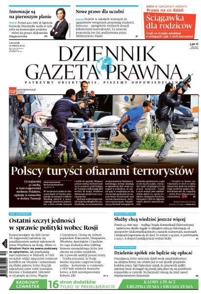 Dziennik Gazeta Prawna – codziennie obiektywne i rzetelne informacje z kraju i ze świata. Piszemy o tym, co dziś ważne i odpowiadamy na Wasze pytania – szczególnie te związane z obecnymi wyzwaniami tj. pandemia, praca zdalna. Na bieżąco wyjaśniamy zmieniające się przepisy. Wspieramy się wyjaśnieniami ministerstw i urzędów. Pomagamy unikać błędów i ostrzegamy, jakie są kary. Ponadto w każdy piątek specjalne magazynowe wydanie Dziennika Gazety Prawnej w całości z tekstami społeczno-ekonomicznymi.