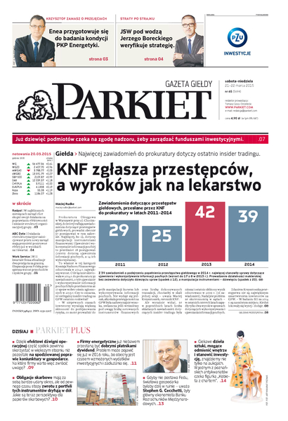 Największy w Polsce newsroom gospodarczy zbiera, analizuje i zgłębia dla Państwa najważniejsze informacje ze świata finansów. Codzienne wydanie „Parkietu”, sześć dni w tygodniu, to kilkadziesiąt artykułów o emitentach, instytucjach finansowych, gospodarce. To również opinie, felietony i wywiady z najważniejszymi ludźmi krajowej i globalnej finansjery.