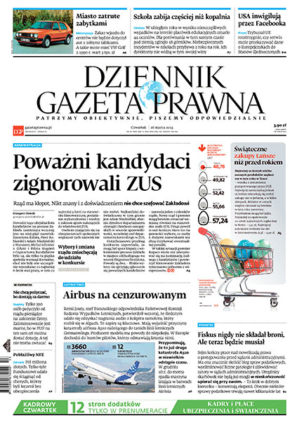 Rząd ma kłopot - poważni kandydaci nie chcą szefować ZUS; w Europie dochodzi do buntów pilotów, którzy odmawiają latania airbusami; Sejm kończy prace nad nowelizacją prawa o postępowaniu przed sądami administracyjnymi; tylko 390 osób pożyczyło od rządu pieniądze na założenie firmy – na ten sam cel można dostać bezzwrotną dotację; tylko pół miliona złotych udało się ściągnąć NFZ od chorych, którzy byli leczeni bez ubezpieczenia.