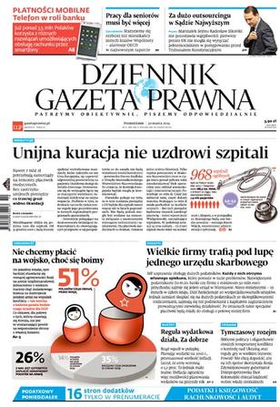 Dziennik Gazeta Prawna – codziennie obiektywne i rzetelne informacje z kraju i ze świata. Piszemy o tym, co dziś ważne i odpowiadamy na Wasze pytania – szczególnie te związane z obecnymi wyzwaniami tj. pandemia, praca zdalna. Na bieżąco wyjaśniamy zmieniające się przepisy. Wspieramy się wyjaśnieniami ministerstw i urzędów. Pomagamy unikać błędów i ostrzegamy, jakie są kary. Ponadto w każdy piątek specjalne magazynowe wydanie Dziennika Gazety Prawnej w całości z tekstami społeczno-ekonomicznymi.