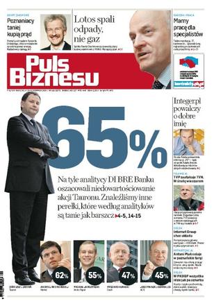 Na 65 proc. oszacowali analitycy DI BRE Banku niedowartościowanie akcji Tauronu; Integer.pl jeszcze nie dostał wezwania do zapłaty od Poczty Polskiej, ale już odpiera jej zarzuty; Poznań tworzy energetyczną grupę zakupową; Lotosowi nie będzie po drodze z PGNiG; większość pracodawców chce zatrudniać specjalistów o niszowych kompetencjach; rekomendacje firm z WIG20, mWIG40 i sWIG80.