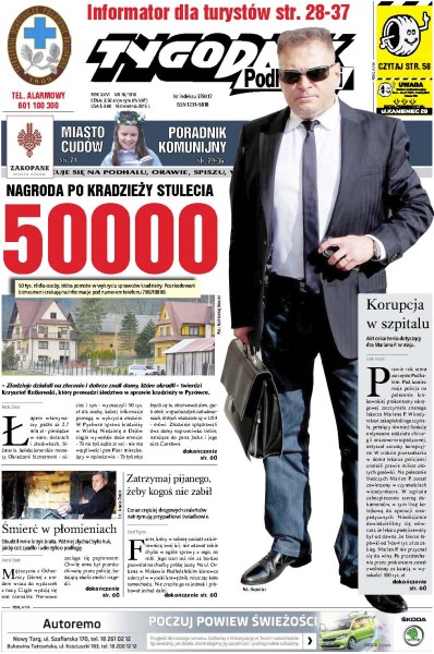 Tygodnik Podhalański to niezależne pismo regionalne – ukazuje się już od 1989 roku na terenie Podhala, Orawy, Spisza i Pienin. Od ponad dziesięciu lat dostępne jest także w Chicago i Toronto. Na jego łamach publikowane są aktualne informacje z regionu.