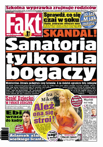 Szkolna wyprawka może w tym roku zrujnować wielu rodziców, nawet kupując w tanich supermarketach trzeba przeznaczyć na to kilkaset złotych; Minister Zdrowia podwyższa ceny za turnusy w sanatoriach, a na dodatek ogranicza liczbę zabiegów; Iza Miko przygotowuje się do prowadzenia gali Miss Polonia; kompletnie pijana rodzina opiekowała się 11-miesięcznym maluszkiem; znany i lubiany serial „M jak miłość” obchodzi 10. urodziny.