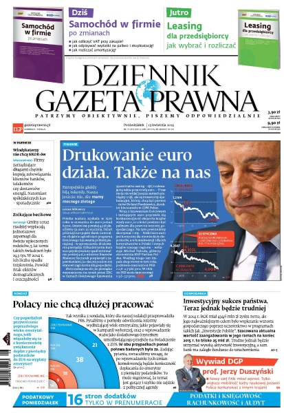 Dziennik Gazeta Prawna – codziennie obiektywne i rzetelne informacje z kraju i ze świata. Piszemy o tym, co dziś ważne i odpowiadamy na Wasze pytania – szczególnie te związane z obecnymi wyzwaniami tj. pandemia, praca zdalna. Na bieżąco wyjaśniamy zmieniające się przepisy. Wspieramy się wyjaśnieniami ministerstw i urzędów. Pomagamy unikać błędów i ostrzegamy, jakie są kary. Ponadto w każdy piątek specjalne magazynowe wydanie Dziennika Gazety Prawnej w całości z tekstami społeczno-ekonomicznymi.