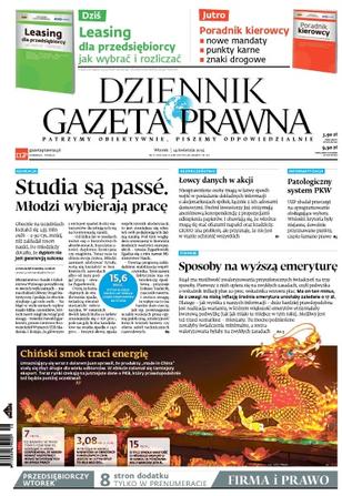 Dziennik Gazeta Prawna – codziennie obiektywne i rzetelne informacje z kraju i ze świata. Piszemy o tym, co dziś ważne i odpowiadamy na Wasze pytania – szczególnie te związane z obecnymi wyzwaniami tj. pandemia, praca zdalna. Na bieżąco wyjaśniamy zmieniające się przepisy. Wspieramy się wyjaśnieniami ministerstw i urzędów. Pomagamy unikać błędów i ostrzegamy, jakie są kary. Ponadto w każdy piątek specjalne magazynowe wydanie Dziennika Gazety Prawnej w całości z tekstami społeczno-ekonomicznymi.
