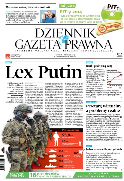 Dziennik Gazeta Prawna – codziennie obiektywne i rzetelne informacje z kraju i ze świata. Piszemy o tym, co dziś ważne i odpowiadamy na Wasze pytania – szczególnie te związane z obecnymi wyzwaniami tj. pandemia, praca zdalna. Na bieżąco wyjaśniamy zmieniające się przepisy. Wspieramy się wyjaśnieniami ministerstw i urzędów. Pomagamy unikać błędów i ostrzegamy, jakie są kary. Ponadto w każdy piątek specjalne magazynowe wydanie Dziennika Gazety Prawnej w całości z tekstami społeczno-ekonomicznymi.