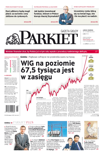 Największy w Polsce newsroom gospodarczy zbiera, analizuje i zgłębia dla Państwa najważniejsze informacje ze świata finansów. Codzienne wydanie „Parkietu”, sześć dni w tygodniu, to kilkadziesiąt artykułów o emitentach, instytucjach finansowych, gospodarce. To również opinie, felietony i wywiady z najważniejszymi ludźmi krajowej i globalnej finansjery.