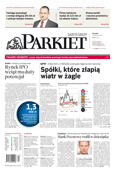 Gazeta Giełdy i Inwestorów Parkiet przyspiesza publikację e-wydania. Od poniedziałku, już od godz. 20.00, można kupić i przeczytać e-wydanie Parkietu, które w wersji papierowej ukaże się dopiero następnego dnia. Parkiet jest więc najświeższą gazetą finansową w Polsce.