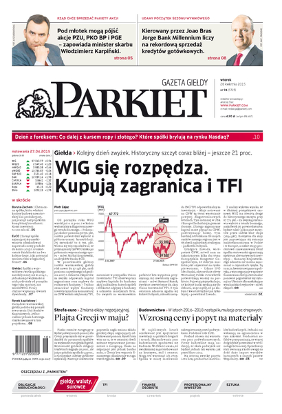 Największy w Polsce newsroom gospodarczy zbiera, analizuje i zgłębia dla Państwa najważniejsze informacje ze świata finansów. Codzienne wydanie „Parkietu”, sześć dni w tygodniu, to kilkadziesiąt artykułów o emitentach, instytucjach finansowych, gospodarce. To również opinie, felietony i wywiady z najważniejszymi ludźmi krajowej i globalnej finansjery.