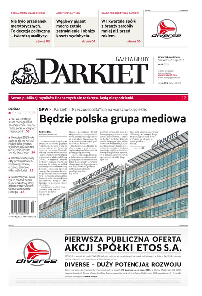Gazeta Giełdy i Inwestorów Parkiet przyspiesza publikację e-wydania. Od poniedziałku, już od godz. 20.00, można kupić i przeczytać e-wydanie Parkietu, które w wersji papierowej ukaże się dopiero następnego dnia. Parkiet jest więc najświeższą gazetą finansową w Polsce.