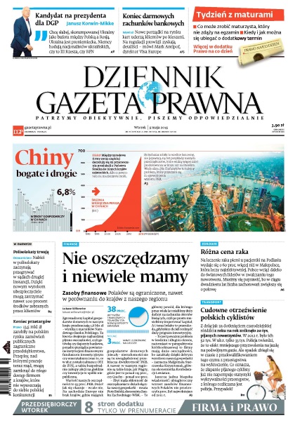 Dziennik Gazeta Prawna – codziennie obiektywne i rzetelne informacje z kraju i ze świata. Piszemy o tym, co dziś ważne i odpowiadamy na Wasze pytania – szczególnie te związane z obecnymi wyzwaniami tj. pandemia, praca zdalna. Na bieżąco wyjaśniamy zmieniające się przepisy. Wspieramy się wyjaśnieniami ministerstw i urzędów. Pomagamy unikać błędów i ostrzegamy, jakie są kary. Ponadto w każdy piątek specjalne magazynowe wydanie Dziennika Gazety Prawnej w całości z tekstami społeczno-ekonomicznymi.