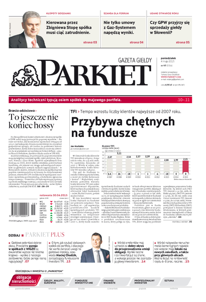 Gazeta Giełdy i Inwestorów Parkiet przyspiesza publikację e-wydania. Od poniedziałku, już od godz. 20.00, można kupić i przeczytać e-wydanie Parkietu, które w wersji papierowej ukaże się dopiero następnego dnia. Parkiet jest więc najświeższą gazetą finansową w Polsce.