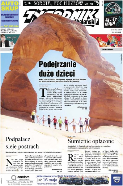 Tygodnik Podhalański to niezależne pismo regionalne – ukazuje się już od 1989 roku na terenie Podhala, Orawy, Spisza i Pienin. Od ponad dziesięciu lat dostępne jest także w Chicago i Toronto. Na jego łamach publikowane są aktualne informacje z regionu.