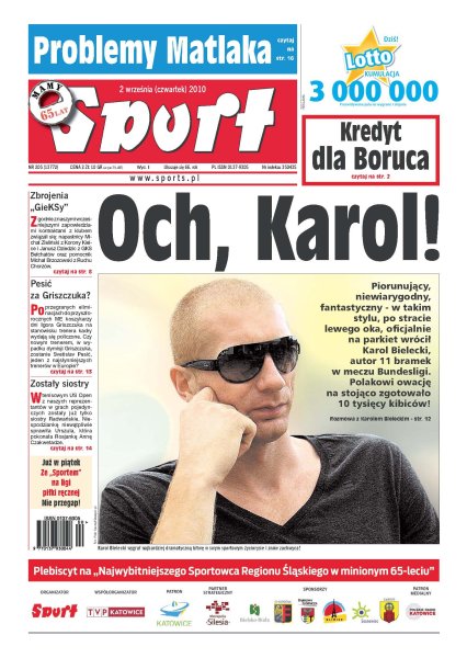 Piorunujący, niewiarygodny, fantastyczny – w takim stylu, po stracie lewego oka, oficjalnie na parkiet wrócił Karol Bielecki, autor 11 bramek w meczu Bundesligi; bramkarz włoskiej Fiorentiny Artur Boruc dostał od selekcjonera kredyt zaufania i rozpocznie mecz z Ukrainą w podstawowej jedenastce; nerwowa atmosfera w ostatnich dniach panuje w klubie z Bogumińskiej; nie ma już polskich tenisistów w US Open – siostry Radwańskie dziś walczą o trzecią rundę.
