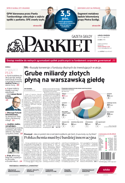 Największy w Polsce newsroom gospodarczy zbiera, analizuje i zgłębia dla Państwa najważniejsze informacje ze świata finansów. Codzienne wydanie „Parkietu”, sześć dni w tygodniu, to kilkadziesiąt artykułów o emitentach, instytucjach finansowych, gospodarce. To również opinie, felietony i wywiady z najważniejszymi ludźmi krajowej i globalnej finansjery.