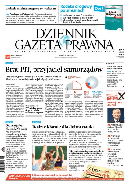 Bruksela markuje integrację ze Wschodem – Petro Poroszenko nie potrafi wykorzystać dobrej prasy, jaką na Zachodzie do niedawna miała Ukraina; brat PIT, przyjaciel samorządów – przychody gmin wzrosną o kilka miliardów złotych, ale dostaną one mniejsze dotacje i więcej zadań własnych; klient mocniejszy w walce z bankiem; ordynacja bez klauzul – na razie; rodzic kłamie dla dobra nauki.