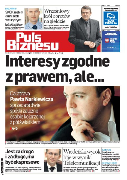 Gdzie można zarobić naprawdę duże pieniądze, gdy na rynkach akcji od wielu miesięcy trwa bezproduktywna huśtawka nastrojów; Calatrava Pawła Narkiewicza sprzedała dwie spółki zależne osobie kojarzonej z półświatkiem; konsumenci, pracownicy i państwowe firmy wesprą w przyszłym roku kasę państwa; Telekomunikacja Polska nie zgadza się na zapłatę gigantycznego odszkodowania; spółkę z o.o. będzie można założyć w jeden dzień.