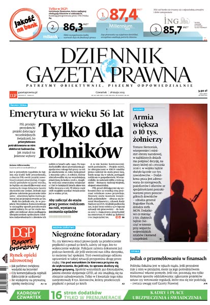 Dziennik Gazeta Prawna – codziennie obiektywne i rzetelne informacje z kraju i ze świata. Piszemy o tym, co dziś ważne i odpowiadamy na Wasze pytania – szczególnie te związane z obecnymi wyzwaniami tj. pandemia, praca zdalna. Na bieżąco wyjaśniamy zmieniające się przepisy. Wspieramy się wyjaśnieniami ministerstw i urzędów. Pomagamy unikać błędów i ostrzegamy, jakie są kary. Ponadto w każdy piątek specjalne magazynowe wydanie Dziennika Gazety Prawnej w całości z tekstami społeczno-ekonomicznymi.