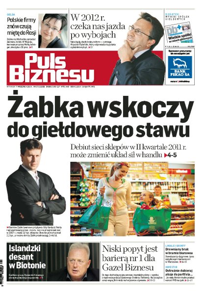 Debiut sieci sklepów Żabka w II kwartale 2011 roku może zmienić układ sił w handlu; coraz bardziej pogarsza się sytuacja pracowników sezonowych; farmaceutyczny gigant Actavis odkupi od Biotonu część udziałów w jednej ze spółek zależnych; rosyjskie spółki giełdowe poprawiają sprzedaż i wracają do inwestycji; niska sprzedaż już piąty sezon z rzędu jest główną przeszkodą w rozwoju polskich przedsiębiorstw.