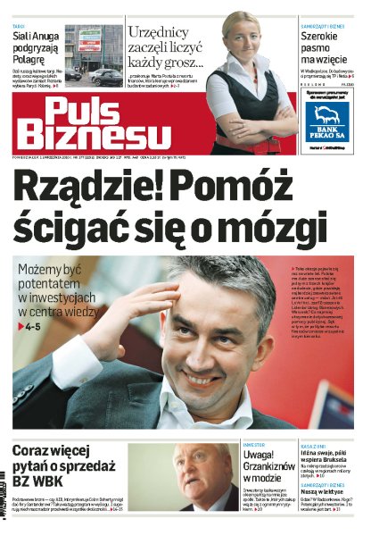 Budżet zadaniowy wreszcie przestał być traktowany przez urzędników jako uciążliwa formalność; Polska może już niedługo zostać liderem w centrach wiedzy; Telekomunikacja Polska i Netia są bliskie stworzenia spółki z samorządem; wiele dużych firm spożywczych z Polski rezygnuje z wystawiania się na Polagrze, wolą targi w Niemczech i we Francji; coraz więcej kontrowersji wokół banku BZ WBK.