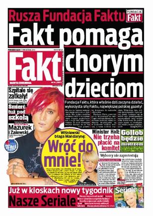 Fundacja Faktu, która właśnie dziś zaczyna działać, chce wykorzystać siłę największej polskiej gazety; polskie szpitale są kompletnie zatkane, aż 650 tysięcy ludzi czeka w długich kolejkach na operacje; Michał Wiśniewski błaga swoją byłą żonę, aby do niego wróciła; Tomasz Gollob wygrał Nordyckie Grand Prix, tytuł mistrza świata jest już właściwie jego; tragiczna śmierć pod szkołą.