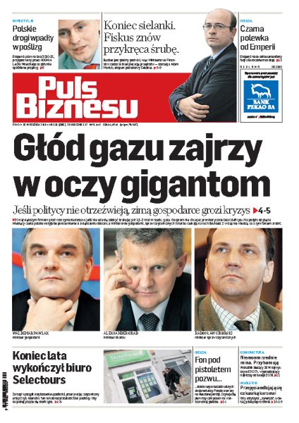 Już zimą możemy mieć kolejny problem związany z gazem, który może spowodować poważne konsekwencje dla naszej gospodarki; kolejne duże biuro podróży ogłosiło upadłość, a klienci stracili zaplanowane wycieczki i pieniądze; GDDKiA rozpoczęła konsultacje społeczne dotyczące planu budowy dróg na lata 2010-2015; resort finansów wydaje coraz bardziej restrykcyjne interpretacje podatkowe; notowania Kolastyny wzrosły wczoraj o 12 proc., a obroty akcjami wyniosły aż 20 mln zł.