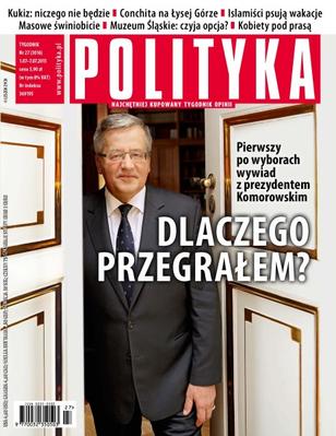 Ustępujący prezydent Bronisław Komorowski o przyczynach przegranej i nadziejach związanych z jesiennymi wyborami; Polska: wyspa zielona i czarna; prof. Małgorzata Fuszara o in vitro, konwencji bioetycznej i związkach partnerskich; trudniej czyścić kamienice; kto naprawdę straci na podwyżce płacy minimalnej; kłopotliwe pamiątki po Hitlerze; sukcesy szmoncesów; humaniści mają przyszłość; doping: gdzie się bierze, a gdzie nie