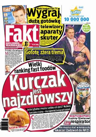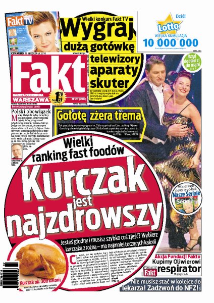 Andrzej Gołota tak przejął się swoim występem w „Tańcu z gwiazdami”, że wymeldował się z hotelu i nikt nie wie, gdzie teraz przebywa; wielki ranking fast foodów; Fundacja Faktu rozpoczyna swoją działalność od bardzo poważnej akcji; co zrobić, aby nie stać w długiej kolejce do lekarza i nic za to nie płacić; już za cztery lata Donald Tusk wycofa się z polityki na szczeblu krajowym i przeniesie się do Brukseli; urzędnicy chcą zakazać dodatków do tytoniu, które poprawiają smak papierosów.