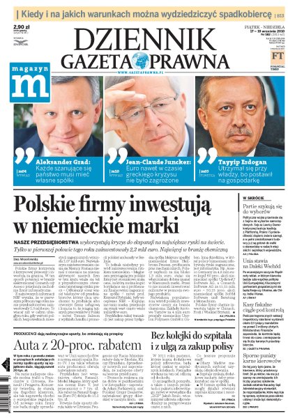Polskie firmy wykorzystują kryzys do ekspansji na największe światowe rynki; partie szykują się do starcia w jesiennych wyborach samorządowych; producenci samochodów kuszą dużymi upustami, bo zmieniają się przepisy; Rosja rozpoczęła dyplomatyczne targi o gigantyczne złoża Arktyki; kontrolerzy nadal będą sprawdzać kasy fiskalne w firmach; pacjenci dostaną ulgę za dodatkową polisę.