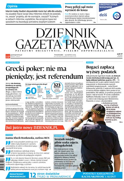 Dziennik Gazeta Prawna – codziennie obiektywne i rzetelne informacje z kraju i ze świata. Piszemy o tym, co dziś ważne i odpowiadamy na Wasze pytania – szczególnie te związane z obecnymi wyzwaniami tj. pandemia, praca zdalna. Na bieżąco wyjaśniamy zmieniające się przepisy. Wspieramy się wyjaśnieniami ministerstw i urzędów. Pomagamy unikać błędów i ostrzegamy, jakie są kary. Ponadto w każdy piątek specjalne magazynowe wydanie Dziennika Gazety Prawnej w całości z tekstami społeczno-ekonomicznymi.