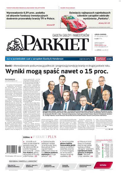 Największy w Polsce newsroom gospodarczy zbiera, analizuje i zgłębia dla Państwa najważniejsze informacje ze świata finansów. Codzienne wydanie „Parkietu”, sześć dni w tygodniu, to kilkadziesiąt artykułów o emitentach, instytucjach finansowych, gospodarce. To również opinie, felietony i wywiady z najważniejszymi ludźmi krajowej i globalnej finansjery.