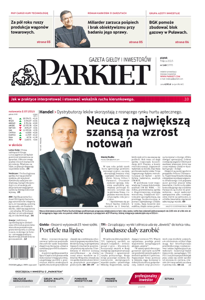 Największy w Polsce newsroom gospodarczy zbiera, analizuje i zgłębia dla Państwa najważniejsze informacje ze świata finansów. Codzienne wydanie „Parkietu”, sześć dni w tygodniu, to kilkadziesiąt artykułów o emitentach, instytucjach finansowych, gospodarce. To również opinie, felietony i wywiady z najważniejszymi ludźmi krajowej i globalnej finansjery.