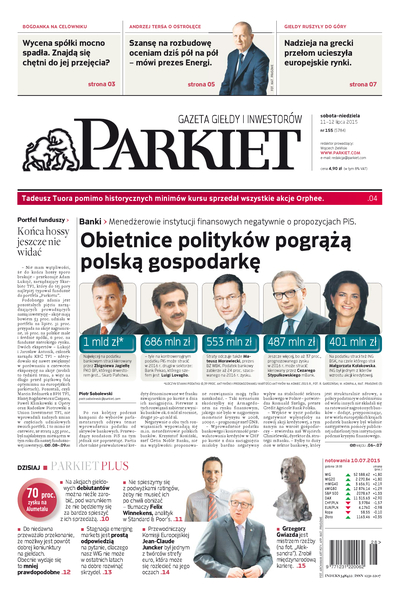 Największy w Polsce newsroom gospodarczy zbiera, analizuje i zgłębia dla Państwa najważniejsze informacje ze świata finansów. Codzienne wydanie „Parkietu”, sześć dni w tygodniu, to kilkadziesiąt artykułów o emitentach, instytucjach finansowych, gospodarce. To również opinie, felietony i wywiady z najważniejszymi ludźmi krajowej i globalnej finansjery.