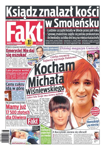 Polski ksiądz znalazł ludzkie szczątki na miejscu katastrofy tupolewa; Bronisław Komorowski lada dzień wprowadzi się do Pałacu Prezydenckiego; Edyta Górniak zdradza, co chciałaby w sobie zmienić; jakie metody maja oszuści, by wyciągnąć pieniądze od swoich ofiar; od stycznia czekają nas podwyżki cen cukru i wszystkich produktów, do których jest dodawany; Michał Wiśniewski to największy szczęściarz na ziemi – ledwie rozstał się z żoną, a już ma kolejną kobietę; jutro Polacy stoczą pierwszy bój na mistrzostwach świata w siatkówce; czy lato wróci jeszcze do Polski.