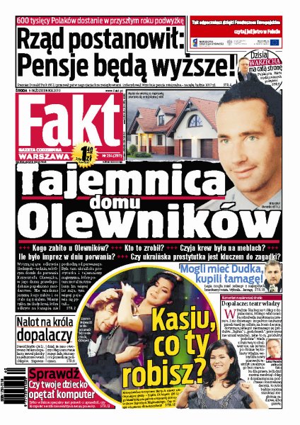 Rząd postanowił, że pensja minimalna w 2011 roku wzrośnie do 1037 zł netto; coraz więcej tajemnic wokół sprawy związanej ze śmiercią Krzysztofa Olewnika; Dawid Bratko zwany królem dopalaczy zerwał policyjne plomby na jednym ze swoich sklepów; Legia Warszawa mogła kupić jednego z najlepszych bramkarzy na świecie, ostatecznie działacze zdecydowali się na zakup łamagi; niewybredne erotyczne żarty Kasi Cichopek.