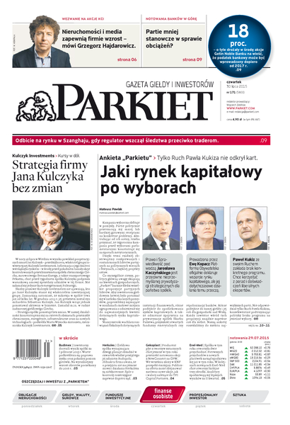 Największy w Polsce newsroom gospodarczy zbiera, analizuje i zgłębia dla Państwa najważniejsze informacje ze świata finansów. Codzienne wydanie „Parkietu”, sześć dni w tygodniu, to kilkadziesiąt artykułów o emitentach, instytucjach finansowych, gospodarce. To również opinie, felietony i wywiady z najważniejszymi ludźmi krajowej i globalnej finansjery.