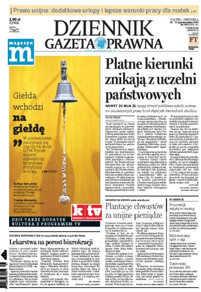 Dziennik Gazeta Prawna – codziennie obiektywne i rzetelne informacje z kraju i ze świata. Piszemy o tym, co dziś ważne i odpowiadamy na Wasze pytania – szczególnie te związane z obecnymi wyzwaniami tj. pandemia, praca zdalna. Na bieżąco wyjaśniamy zmieniające się przepisy. Wspieramy się wyjaśnieniami ministerstw i urzędów. Pomagamy unikać błędów i ostrzegamy, jakie są kary. Ponadto w każdy piątek specjalne magazynowe wydanie Dziennika Gazety Prawnej w całości z tekstami społeczno-ekonomicznymi.