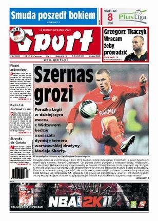 Już dziś wielki szlagier piłkarskiej ekstraklasy, Legia Warszawa zagra z Widzewem Łódź – porażka Legii będzie oznaczała dymisję trenera warszawiaków; przebywający z kilkugodzinną wizytą w Warszawie prezydent UEFA Michel Platini wyraził satysfakcję ze stanu przygotowań do Euro 2012; Laurent Blanc, nowy trener reprezentacji Francji, wprowadził do swojego zespołu wiele zmian; wywiad z siatkarką Aleksandrą Jagiełło; nadchodzą lepsze dni dla Marcina Gortata w składzie Orlando Magic.