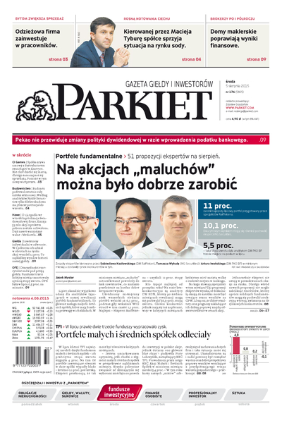Największy w Polsce newsroom gospodarczy zbiera, analizuje i zgłębia dla Państwa najważniejsze informacje ze świata finansów. Codzienne wydanie „Parkietu”, sześć dni w tygodniu, to kilkadziesiąt artykułów o emitentach, instytucjach finansowych, gospodarce. To również opinie, felietony i wywiady z najważniejszymi ludźmi krajowej i globalnej finansjery.