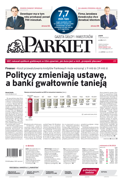 Największy w Polsce newsroom gospodarczy zbiera, analizuje i zgłębia dla Państwa najważniejsze informacje ze świata finansów. Codzienne wydanie „Parkietu”, sześć dni w tygodniu, to kilkadziesiąt artykułów o emitentach, instytucjach finansowych, gospodarce. To również opinie, felietony i wywiady z najważniejszymi ludźmi krajowej i globalnej finansjery.
