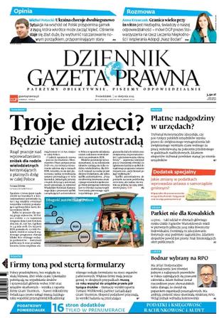 Dziennik Gazeta Prawna – codziennie obiektywne i rzetelne informacje z kraju i ze świata. Piszemy o tym, co dziś ważne i odpowiadamy na Wasze pytania – szczególnie te związane z obecnymi wyzwaniami tj. pandemia, praca zdalna. Na bieżąco wyjaśniamy zmieniające się przepisy. Wspieramy się wyjaśnieniami ministerstw i urzędów. Pomagamy unikać błędów i ostrzegamy, jakie są kary. Ponadto w każdy piątek specjalne magazynowe wydanie Dziennika Gazety Prawnej w całości z tekstami społeczno-ekonomicznymi.