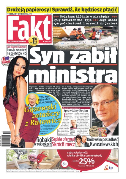 Były wiceminister transportu w rządzie PiS Eugeniusz Wróbel został zamordowany przez swojego syna; rząd podnosi akcyzę – za paczkę zwykłych papierosów przyjdzie zapłacić 9 zł; Jarosław Kaczyński rozpoczął bój o samorządy w Polsce; Aleksander Kwaśniewski zdradza, że rzuca miasto i wynosi się z bloku na wieś; zrozpaczone rodziny i przyjaciele opłakiwali śmierć bliskich, którzy zginęli w wypadku busa; Tomasz Frankowski poprowadził Jagiellonię do wysokiego zwycięstwa nad bytomską Polonią; ponad siedem lat po tragicznym wypadku znakomity polski żużlowiec wrócił na tor.