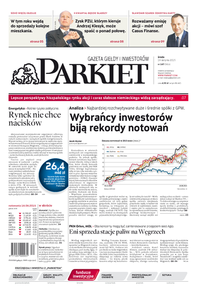Największy w Polsce newsroom gospodarczy zbiera, analizuje i zgłębia dla Państwa najważniejsze informacje ze świata finansów. Codzienne wydanie „Parkietu”, sześć dni w tygodniu, to kilkadziesiąt artykułów o emitentach, instytucjach finansowych, gospodarce. To również opinie, felietony i wywiady z najważniejszymi ludźmi krajowej i globalnej finansjery.