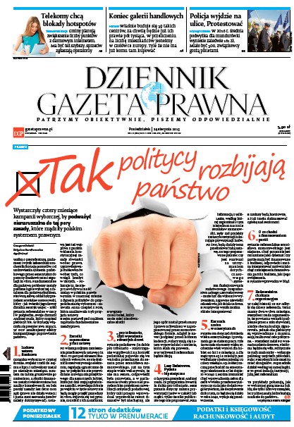 Dziennik Gazeta Prawna – codziennie obiektywne i rzetelne informacje z kraju i ze świata. Piszemy o tym, co dziś ważne i odpowiadamy na Wasze pytania – szczególnie te związane z obecnymi wyzwaniami tj. pandemia, praca zdalna. Na bieżąco wyjaśniamy zmieniające się przepisy. Wspieramy się wyjaśnieniami ministerstw i urzędów. Pomagamy unikać błędów i ostrzegamy, jakie są kary. Ponadto w każdy piątek specjalne magazynowe wydanie Dziennika Gazety Prawnej w całości z tekstami społeczno-ekonomicznymi.
