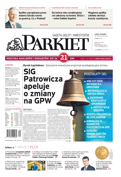Największy w Polsce newsroom gospodarczy zbiera, analizuje i zgłębia dla Państwa najważniejsze informacje ze świata finansów. Codzienne wydanie „Parkietu”, sześć dni w tygodniu, to kilkadziesiąt artykułów o emitentach, instytucjach finansowych, gospodarce. To również opinie, felietony i wywiady z najważniejszymi ludźmi krajowej i globalnej finansjery.