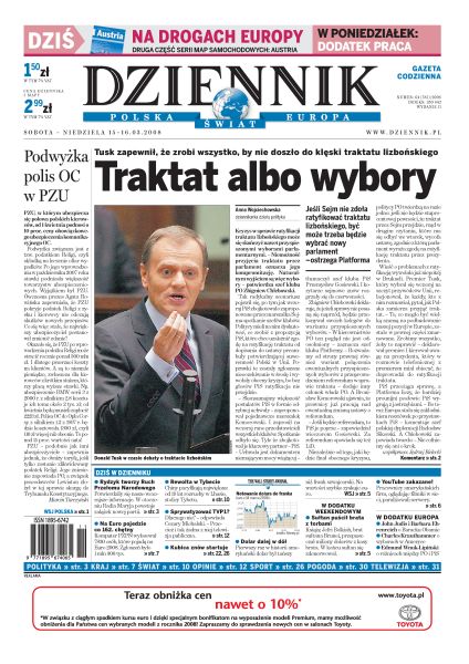 Traktat lizboński albo nowe wybory; kolejne ostrzeżenie dla PiS; „Pogoria” wciąż w Izraelu; antychińskie zamieszki w Lhasie; rozmowy z Nelly Rokitą i Elżbietą Radziszewską; co kryje w sobie BMW Sauber?
