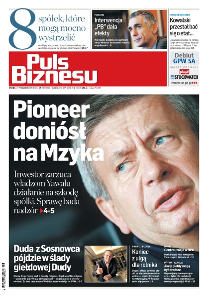 Analitycy wytypowali firmy, które potrzebują niewielkiego impulsu, by ich kurs poszybował; nie będzie podatku od wymiany akcji – minister Grabowski rozwiał wątpliwości; TFI zarzuca władzom Yawalu działanie na szkodę spółki; bogaci chłopi powinni płacić za ubezpieczenie zdrowotne – orzekł Trybunał Konstytucyjny; bank BPH centralizuje trzy centrale: w stolicy, Gdańsku i Krakowie; projektory LED przestają być gadżetami; przychody giełdy w trzecim kwartale niemal nie drgnęły, o jedną czwartą spadł za to zysk netto.