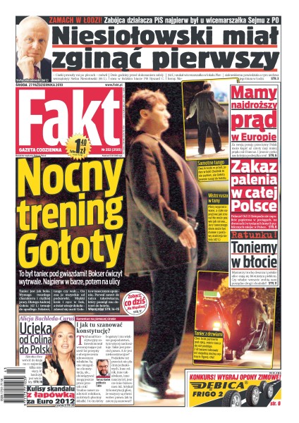 Zabójca z Łodzi Ryszard C. próbował najpierw zabić wicemarszałka Stefana Niesiołowskiego; szokujące odkrycie polskich archeologów w Rosji; Bronisław Komorowski będzie się badał w lecznicy przy ul. Wołoskiej; w Polsce będzie jeszcze drożej, choć już teraz za energię przepłacamy; od 15 listopada czeka nas podróż bez dymka – zakaz będzie dotyczył wszystkich pociągów i dworców; Andrzej Gołota już wie, na co zwraca uwagę jury „Tańca z gwiazdami”; Alicja ucieka od Colina Farrella; Sebastian Świderski nie szczędzi krytyki działaczom PZPS; Franciszek Smuda stwierdził, że kapitan kadry będzie za stary na Euro.