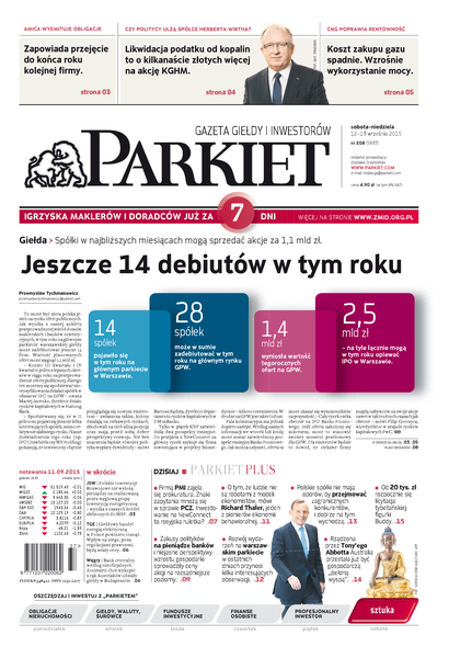 Największy w Polsce newsroom gospodarczy zbiera, analizuje i zgłębia dla Państwa najważniejsze informacje ze świata finansów. Codzienne wydanie „Parkietu”, sześć dni w tygodniu, to kilkadziesiąt artykułów o emitentach, instytucjach finansowych, gospodarce. To również opinie, felietony i wywiady z najważniejszymi ludźmi krajowej i globalnej finansjery.
